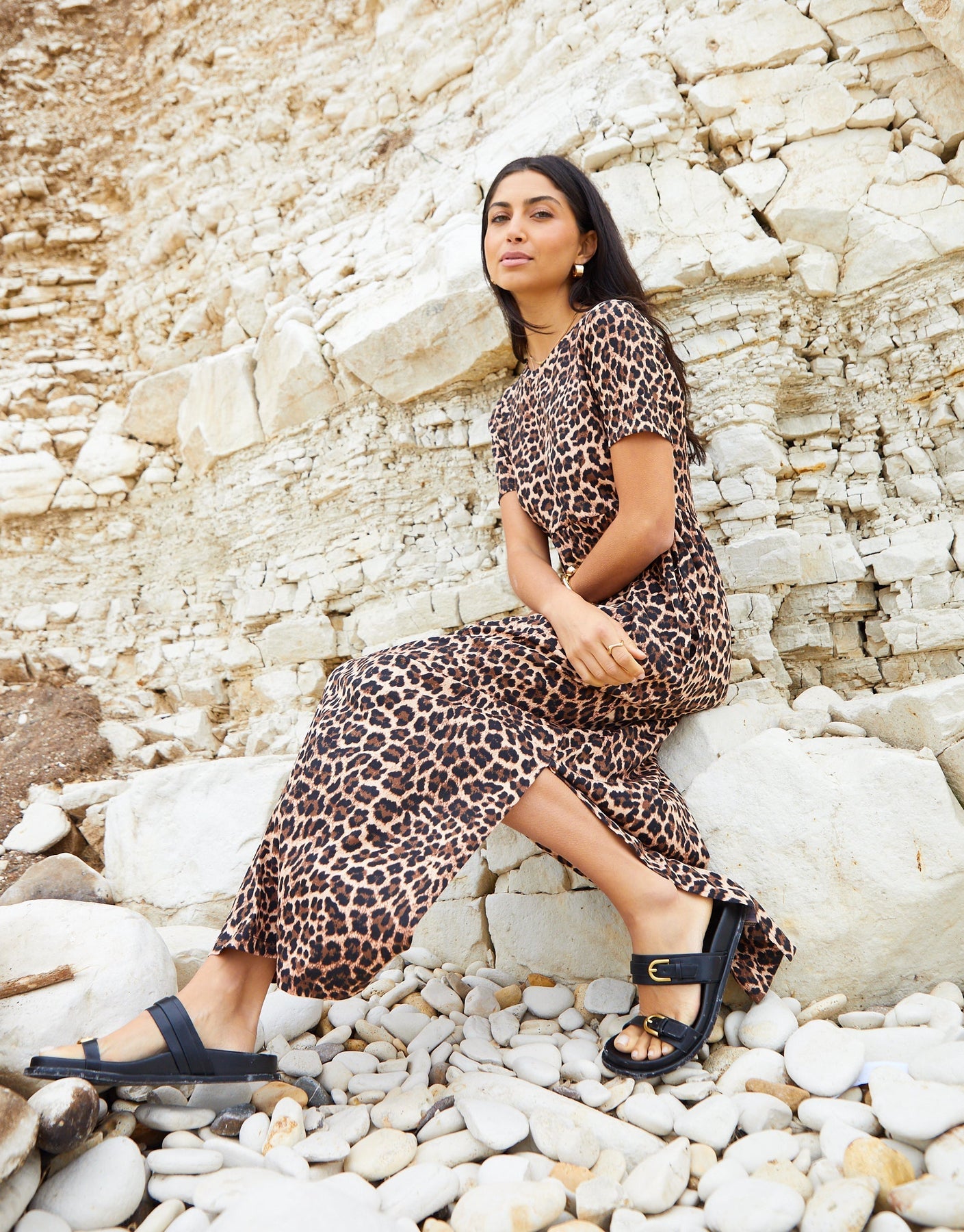 Your casual summer wardrobe gets a fresh twist with this all-over leopard print maxi dress.