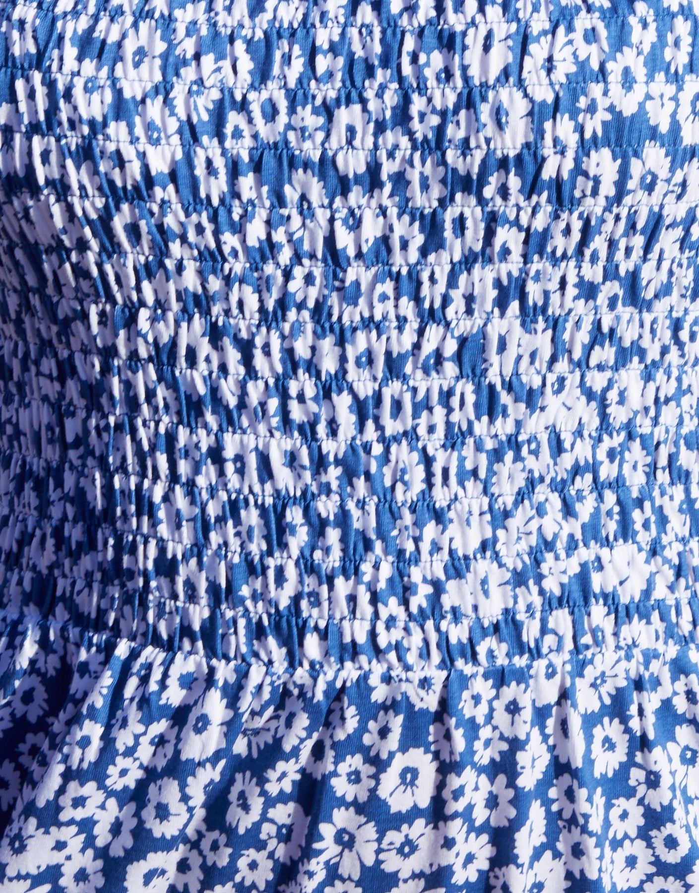 Women's Blue Floral Bandeau Jersey Maxi Dress with Pockets